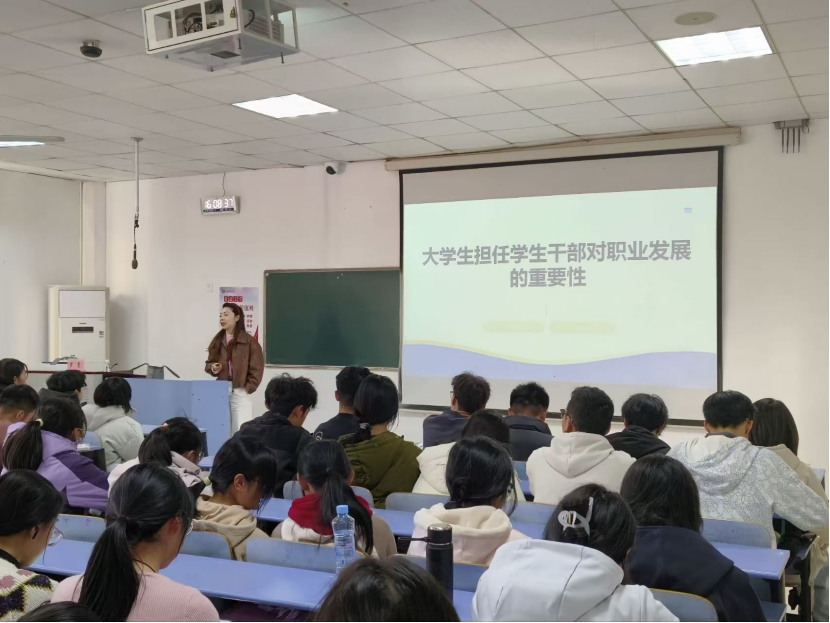 随后,罗老师重点解读了学生干部经历在就业竞争中的具体优势,并将其归纳为四大核心能力——适应力、协作力、创新力与领导力。她指出,担任学生干部能有效锻炼学生的综合素质,帮助他们在未来职场中更快适应环境、促进团队高效协作、运用创新思维解决实际问题,并提升领导与决策能力。此外,罗老师提醒学生干部应避免三种倾向:“官僚化”作风、工作与学习的失衡,以及功利化心态,为学员成长为优秀学生干部指明了方向与路径。
